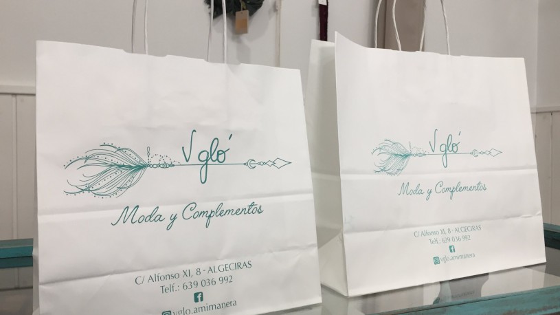 Bolsa de papel con asa trenzada para Alma Pura & Alma Mia Shops, en Zahara de los Atunes