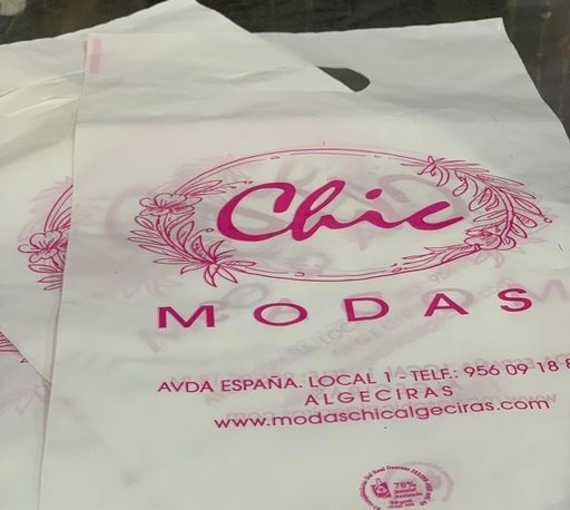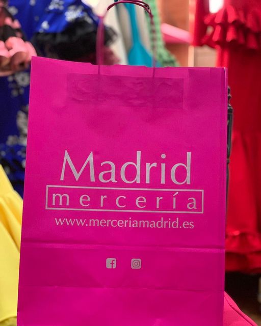 Bolsa de papel con asa trenzada para la mercería Madrid, en Algeciras.