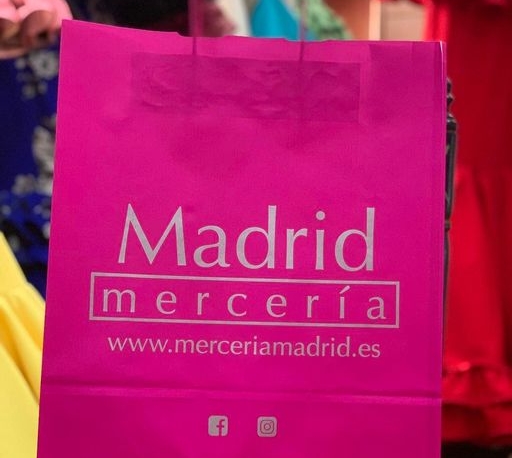 Bolsa de papel con asa trenzada para la mercería Madrid, en Algeciras.