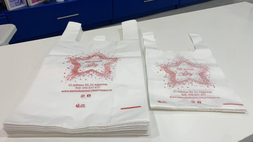 Bolsa de plástico, fabricada con 70% de material reciclado para “La Tienda...