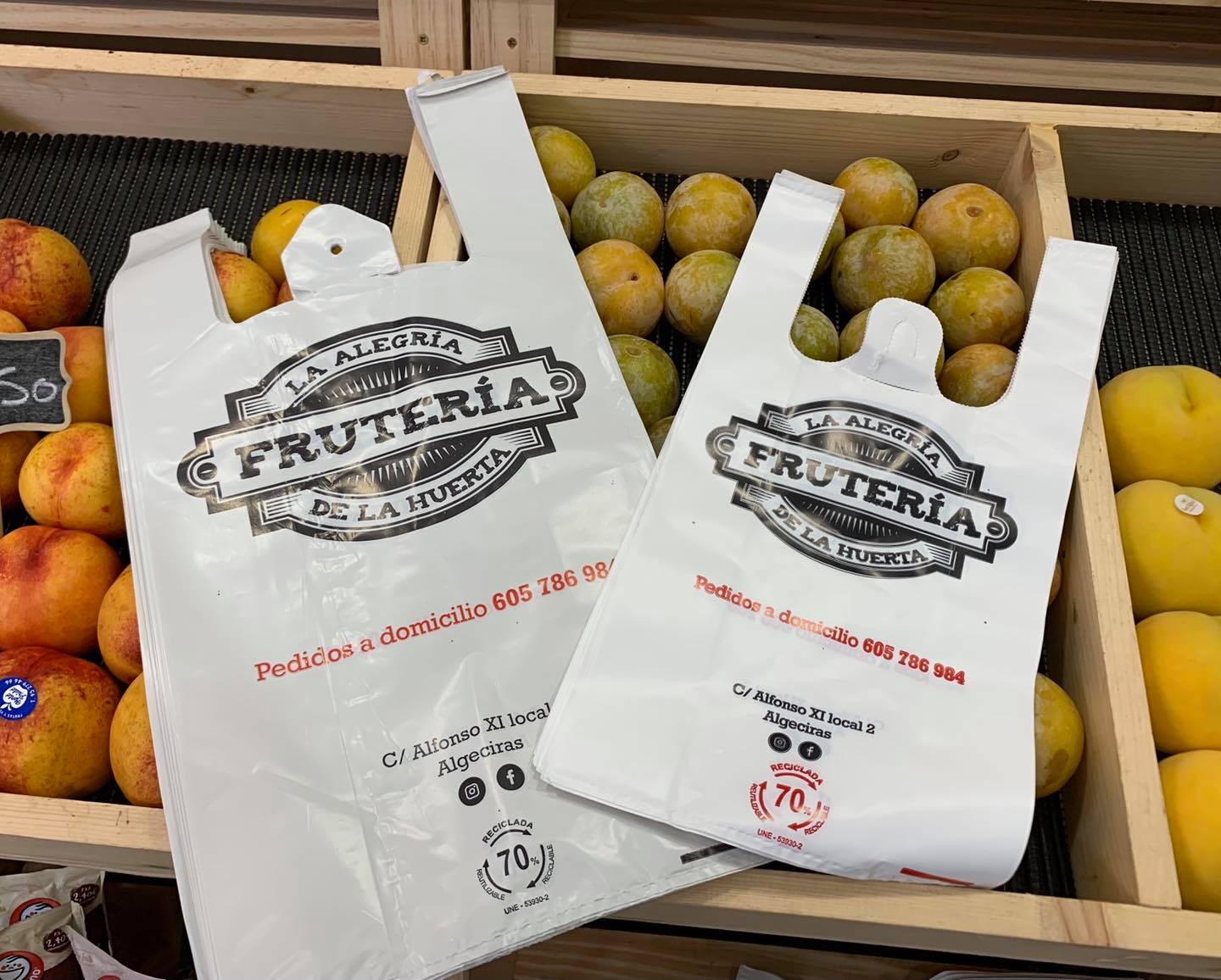 Bolsas fabricadas con 70% de material reciclado para la fruteria “La Alegría de la Huerta”