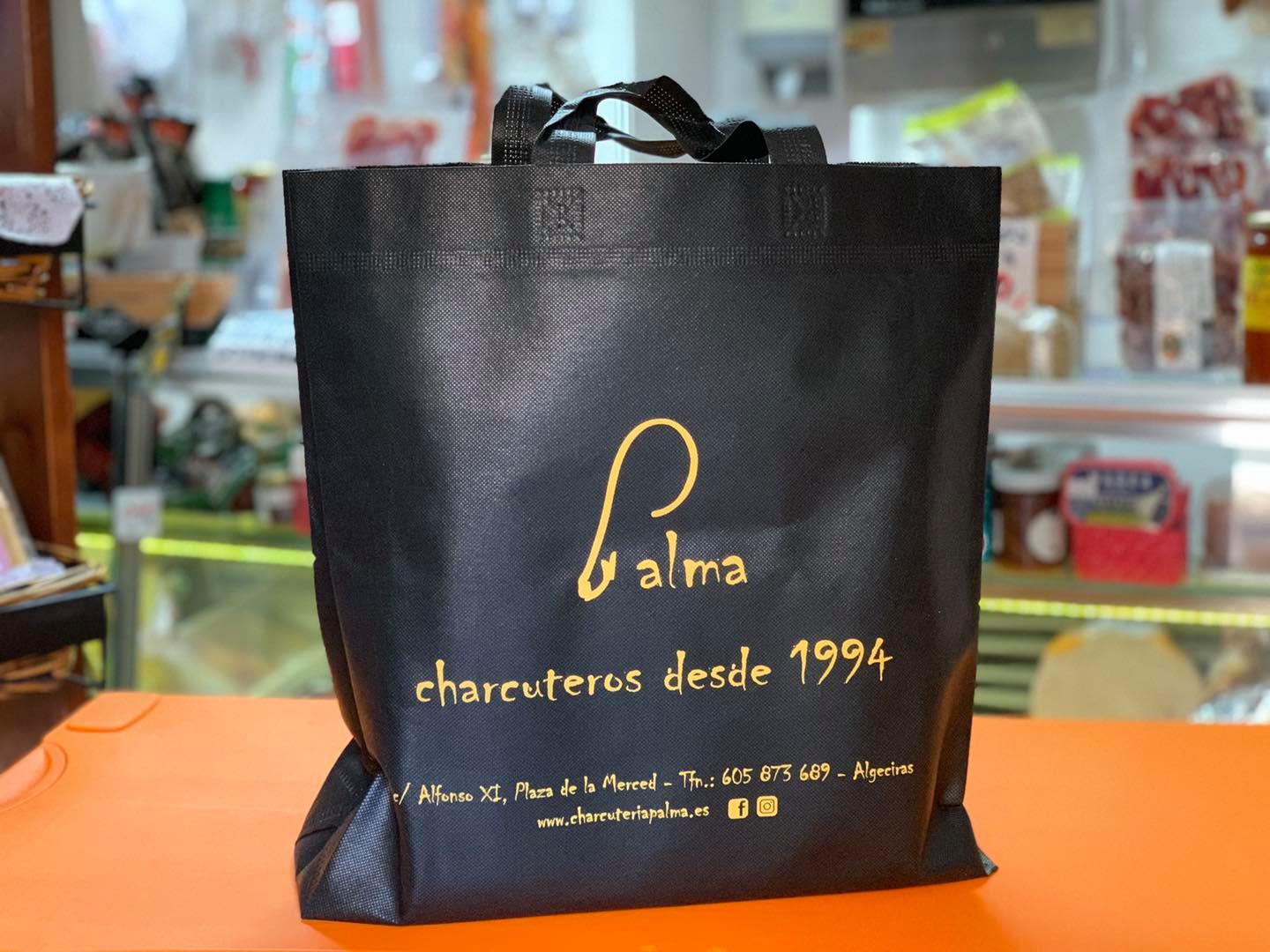 Bolsas reutilizables de tela para Charcutería Palma, en Algeciras.