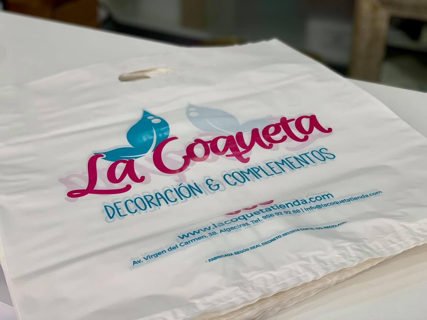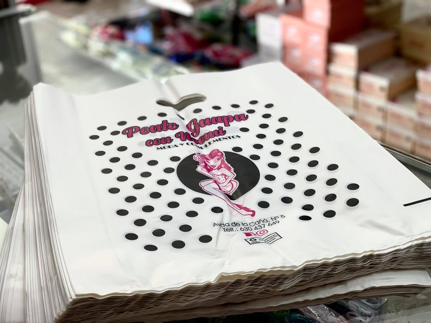 Bolsa de plástico con 70 % de material reciclado para “Ponte guapa con Noemi”